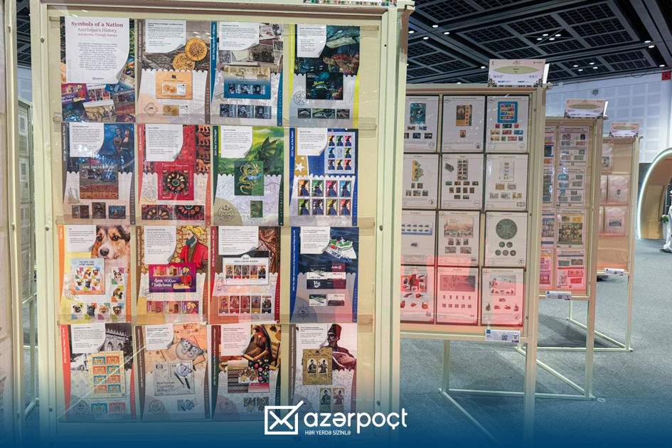 Azərbaycan stendində Xəzər Dəniz Gəmiçiliyinin 165 illiyi, Ucal Haqverdiyevin 65 illiyi, Mirzə Qədim İrəvaninin 200 illiyinə həsr olunmuş markalar, eləcə də ölkənin tarixi və milli kimliyini əks etdirən digər buraxılışlar nümayiş etdirilib.