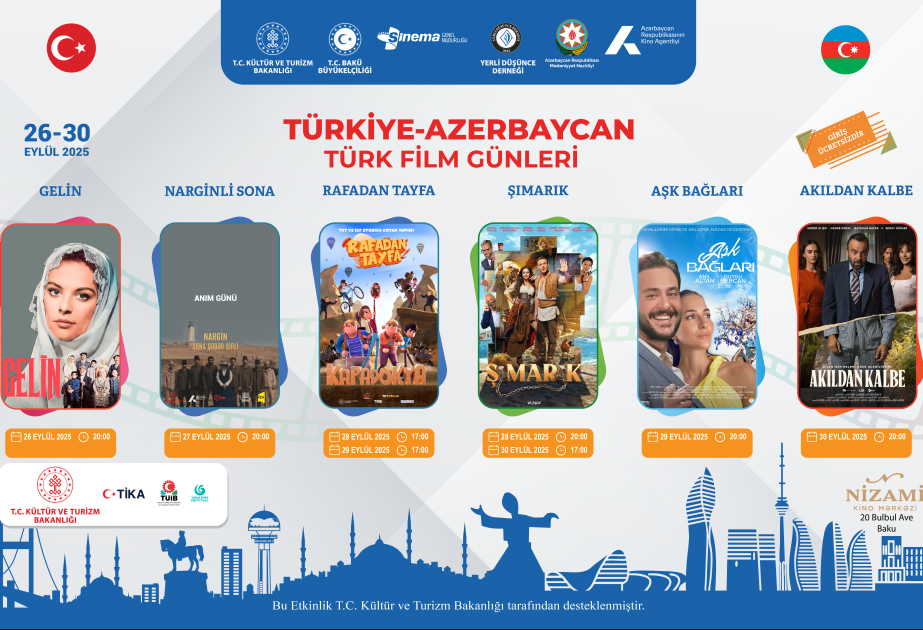 Sentyabrın 26-dan 30-dək Bakıda 8-ci Türkiyə–Azərbaycan türk film günləri keçiriləcək.