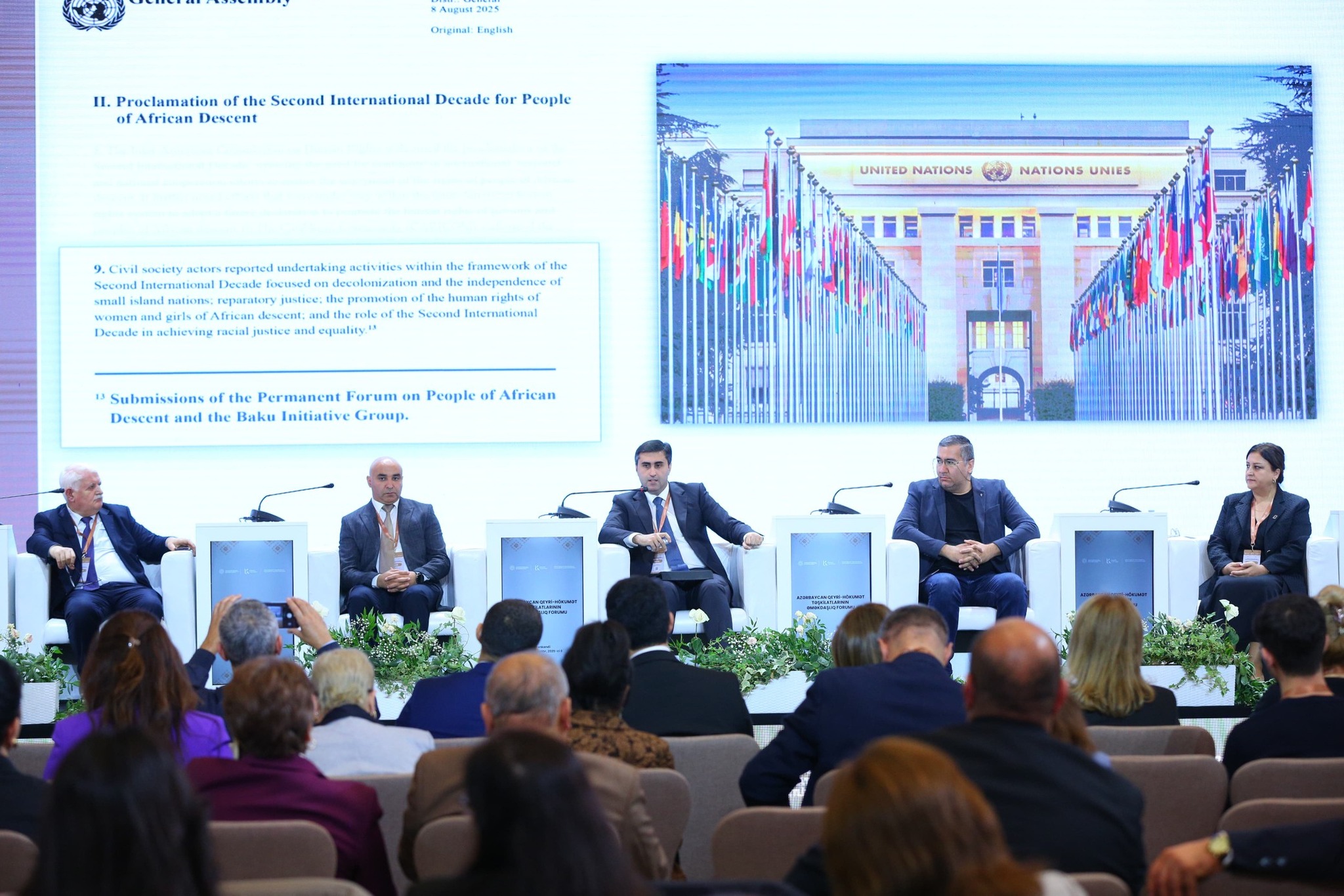 Müzakirələrdə qeyd olunub ki, son 2 ildə Azərbaycan QHT-lərinin ən böyük uğuru dünyaya açılmalarıdır. COP29 dövründə 137 ölkədən BMT statuslu 1023 QHT-nin Azərbaycanın lehinə bəyanat verməsi ilk dəfə baş verən tarixi hadisə idi. Prosesin davamı olaraq, 115 ölkədən nüfuzlu QHT-lərin iştirakı ilə 2025-ci ilin aprelində Bakıda Qlobal Cənub QHT Platforması təsis edildi. Vurğulanıb ki, Qlobal Cənubda dünya əhalisinin 80%-i yaşayır, bu regionun vətəndaş cəmiyyətini ilk dəfə məhz Azərbaycan QHT-ləri birləşdirə bilib, Azərbaycan vətəndaş cəmiyyətinin təşəbbüsü dünyanın 3/2 hissəsini əhatə edən bölgədə beynəlxalq dəstək qazanıb, Bakı Qlobal Cənub QHT Platformasının daimi mənzil qərargahına çevrilib.