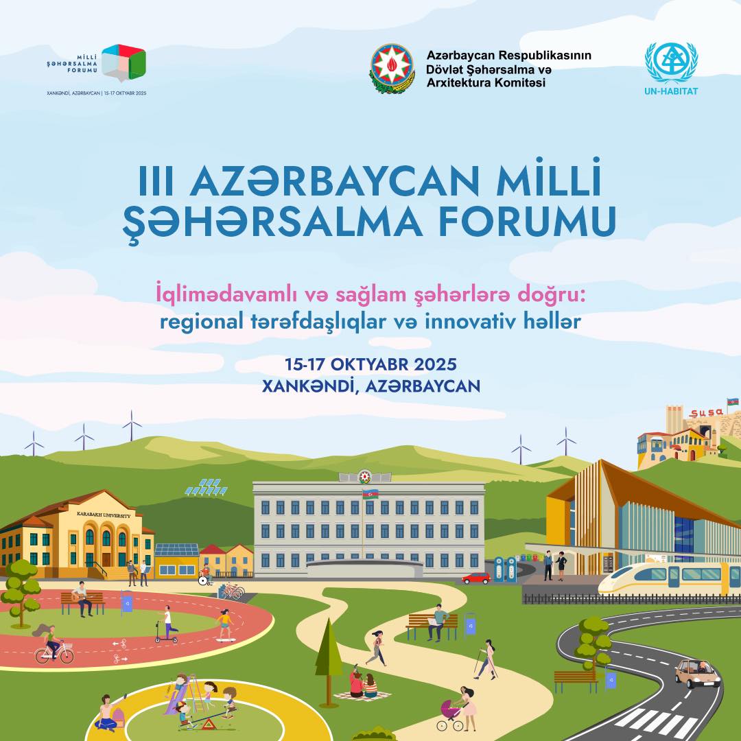 Globalart.az Azərbaycan Respublikasının Dövlət Şəhərsalma və Arxitektura Komitəsinə istinadən xəbər verir ki, Azərbaycan dayanıqlı inkişaf və iqlim gündəliyi üzrə beynəlxalq proseslərdə mövqeyini möhkəmləndirərək “İqlimədavamlı və sağlam şəhərlərə doğru: regional tərəfdaşlıqlar və innovativ həllər” mövzusunda Üçüncü Milli Şəhərsalma Forumunu (NUFA3) keçirməyə hazırlaşır. Forum Dövlət Şəhərsalma və Arxitektura Komitəsinin Birləşmiş Millətlər Təşkilatının Məskunlaşma Proqramı (“UN-Habitat”) ilə əməkdaşlığı çərçivəsində 15-17 oktyabr 2025-ci il tarixlərində Xankəndi və Bakı şəhərlərində baş tutacaq.
