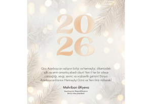 Azərbaycan Respublikasının Birinci vitse-prezidenti Mehriban Əliyeva 31 Dekabr – Dünya Azərbaycanlılarının Həmrəyliyi Günü və Yeni il münasibətilə rəsmi sosial şəbəkə səhifələrində paylaşım edib.