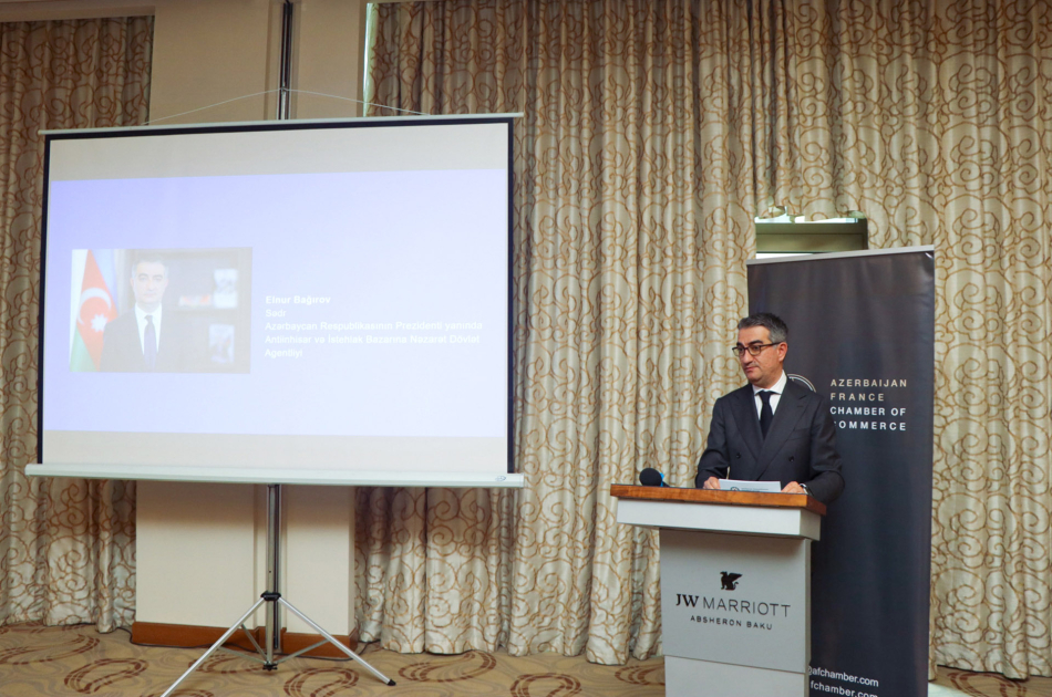 Azərbaycan Respublikasının Prezidenti yanında Antiinhisar və İstehlak Bazarına Nəzarət Dövlət Agentliyinin nümayəndələri Azərbaycan-Fransa Ticarət və Sənaye Palatası (AFChamber) tərəfindən təşkil olunan “Yeni Rəqabət Məcəlləsinin tətbiqi” mövzusundakı maarifləndirmə tədbirində iştirak edib.